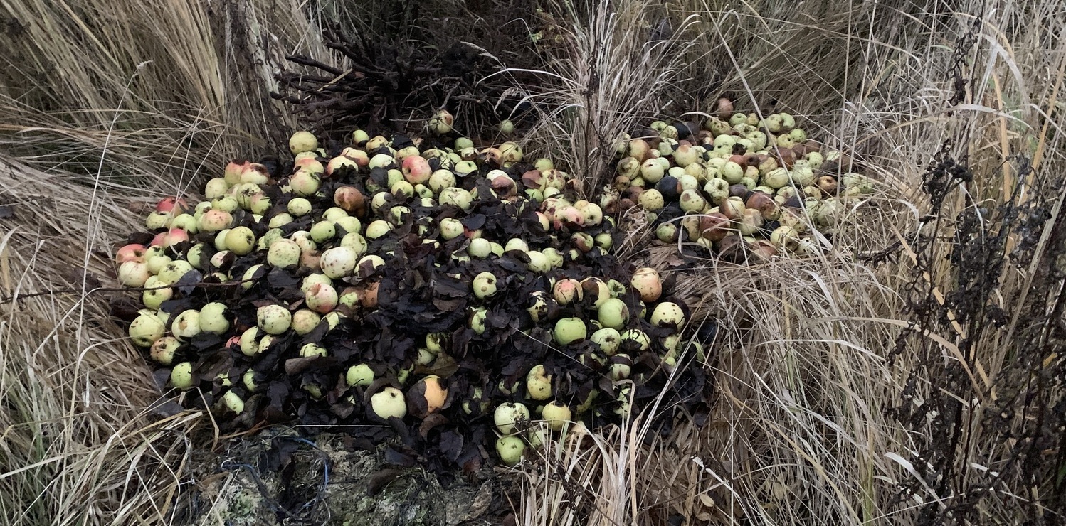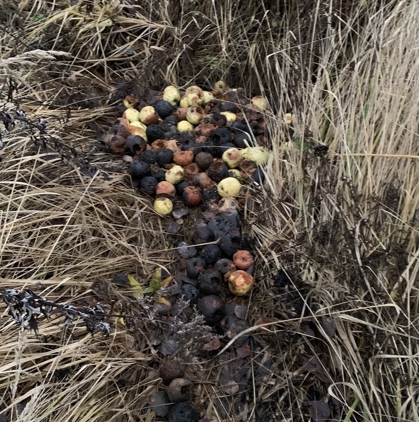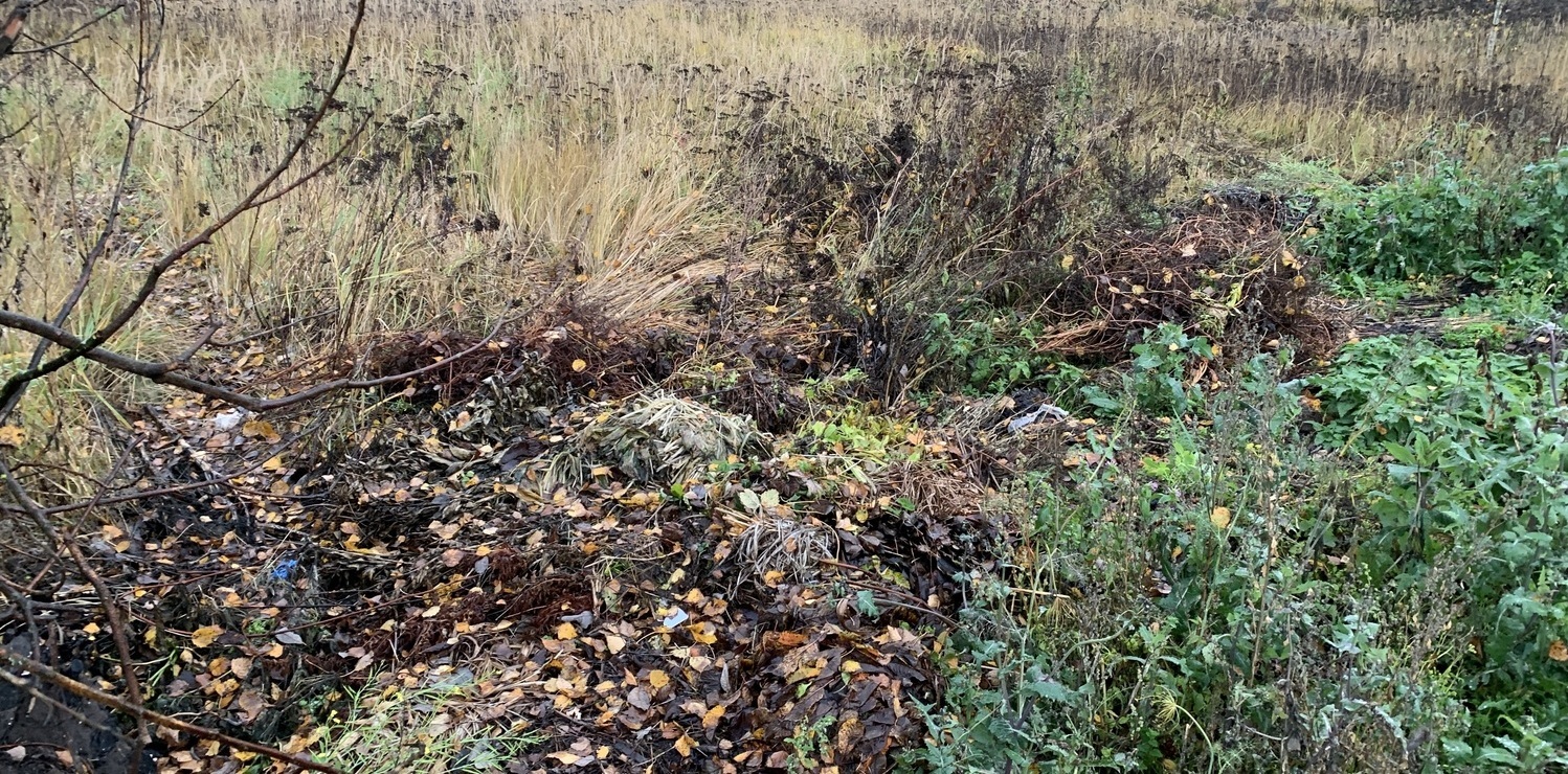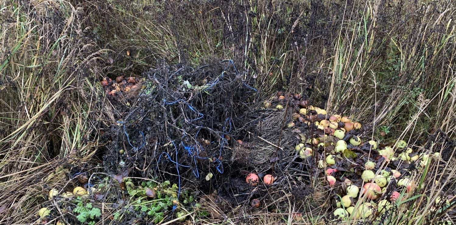 Свалка гнилых яблок, ботвы, веток на общественной территории: в 20 м от главных ворот, за частной калиткой на Аэродромной ул. напротив 10-й ул.