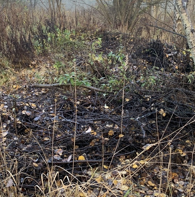 Свалка веток за калиткой в конце Аэродромной ул. напротив 10-ул.
